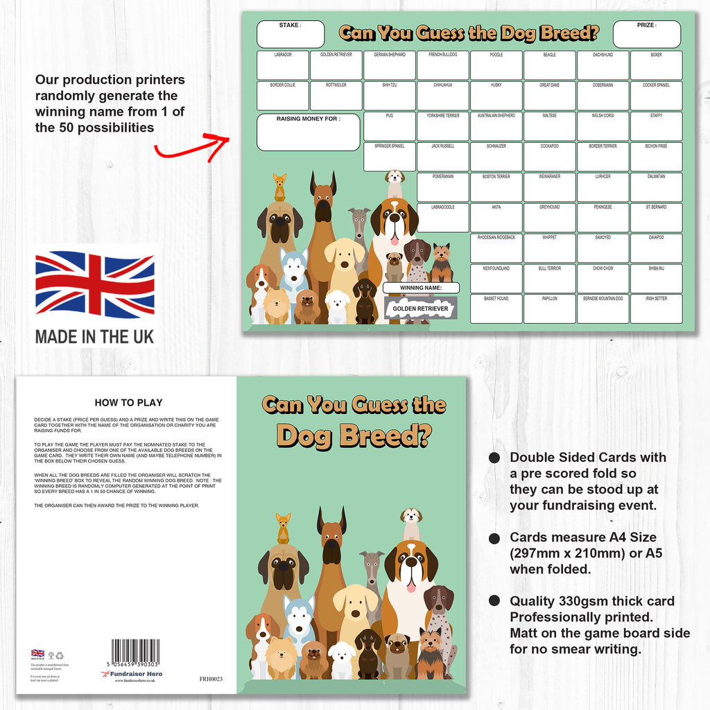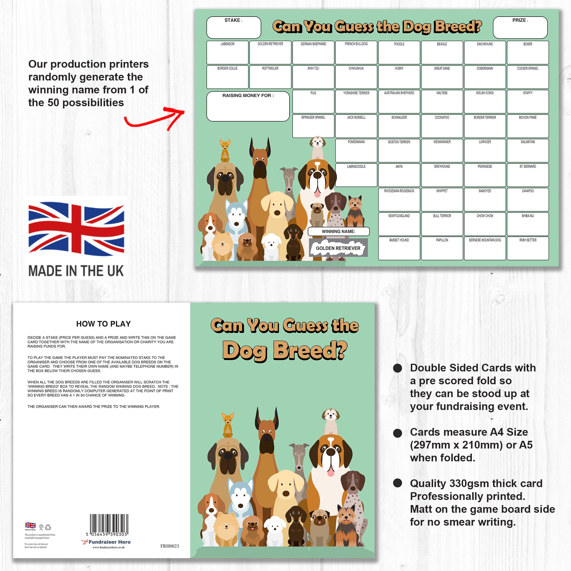 1 x GUESS THE DOG BREED FUNDRAISING CARD ⭐ Each Pack contains one Game Card ⭐