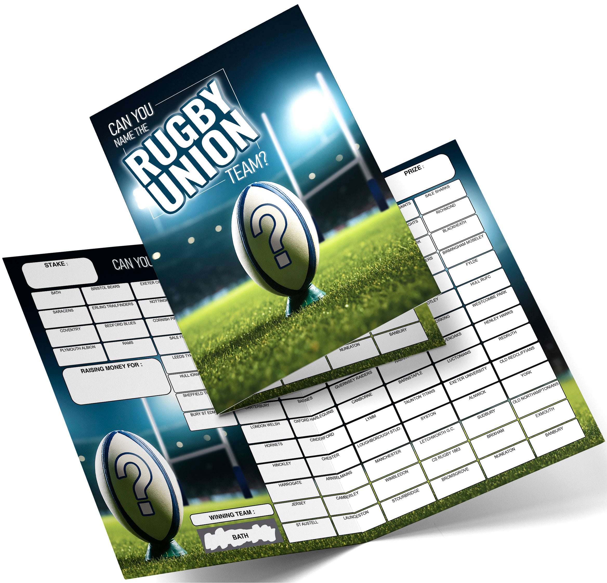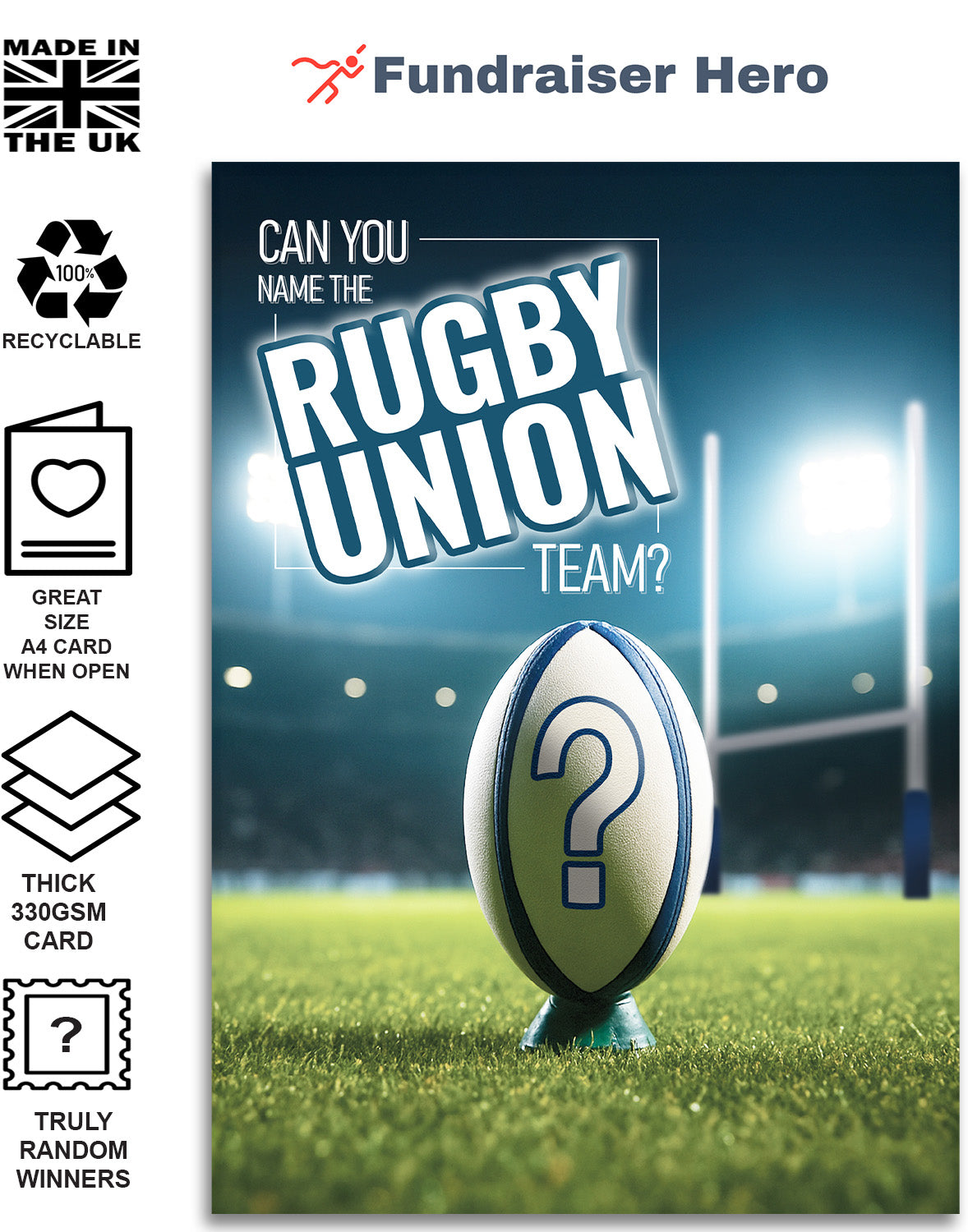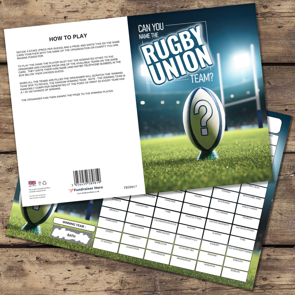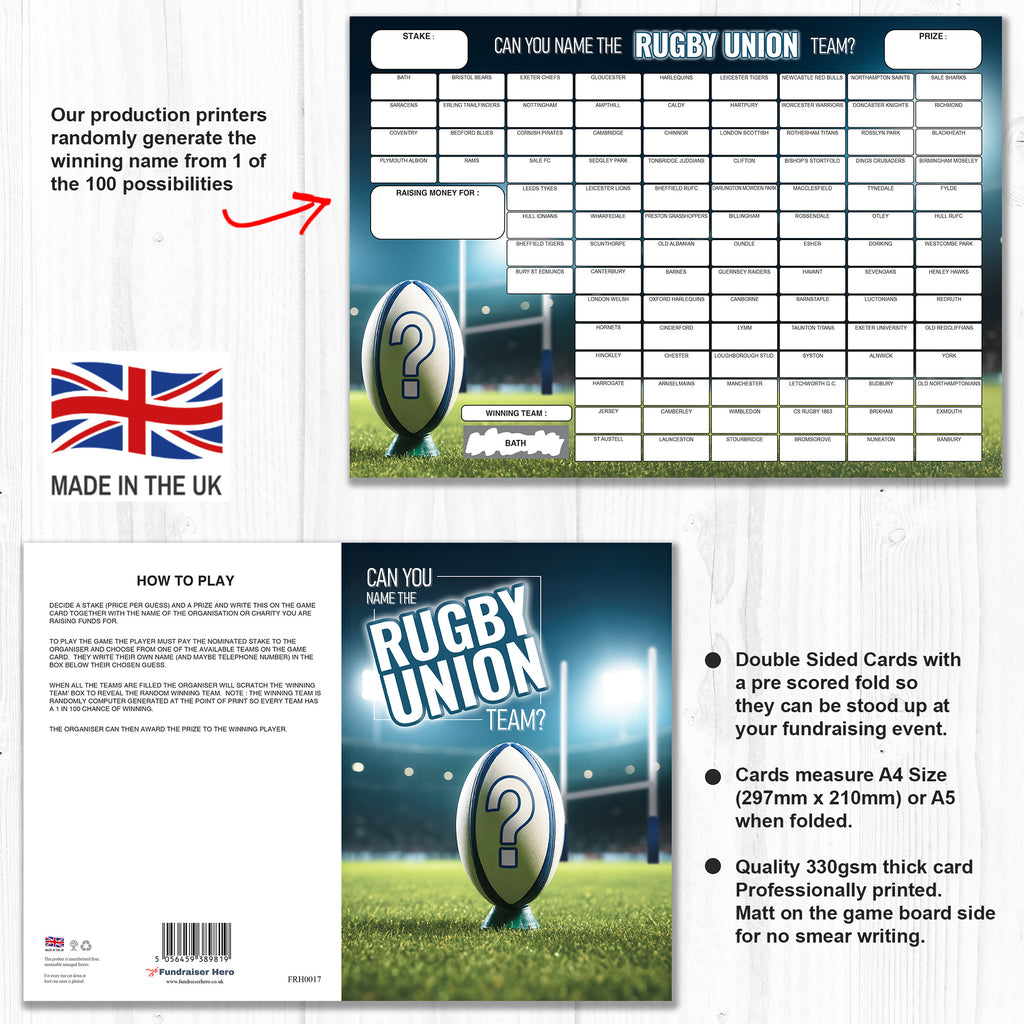 1 x NAME THE RUGBY UNION TEAM FUNDRAISING CARD ⭐ Each Pack contains one Game Card ⭐