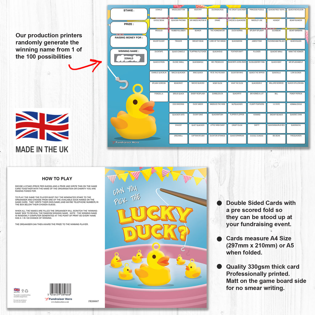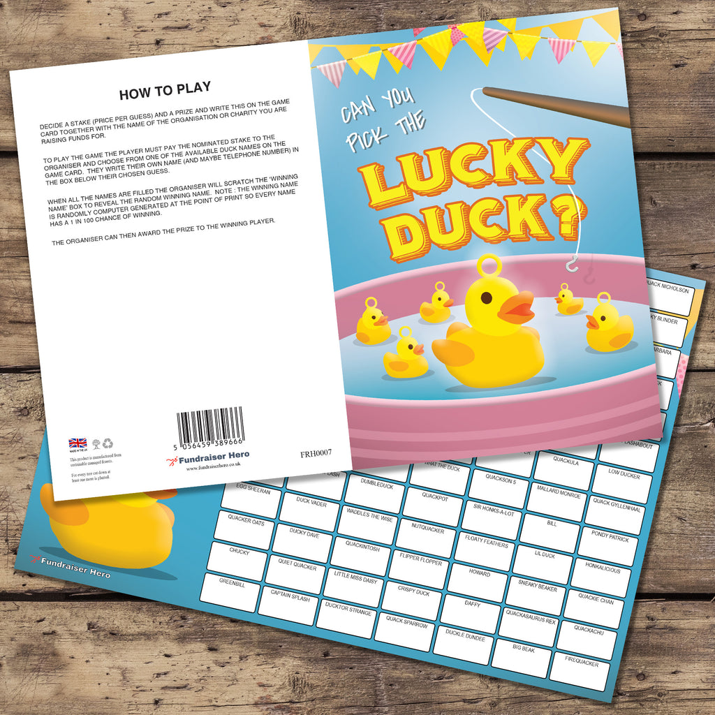 • 1 x CAN YOU PICK THE LUCKY DUCK FUNDRAISING CARD ⭐ Each Pack contains one Game Card ⭐