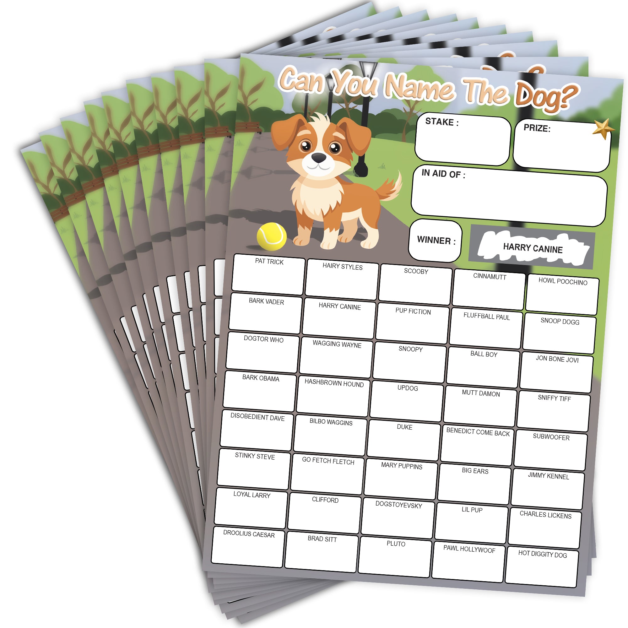 Pack of 10 - Name the Dog Scratch Cards. A5 Size - 40 Names - 330gsm Card