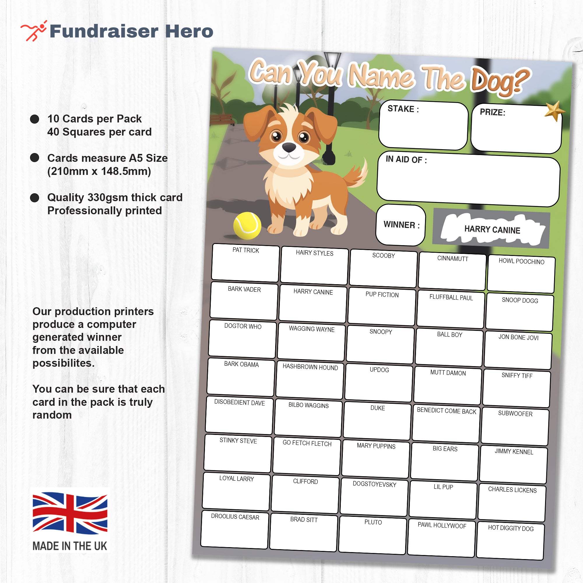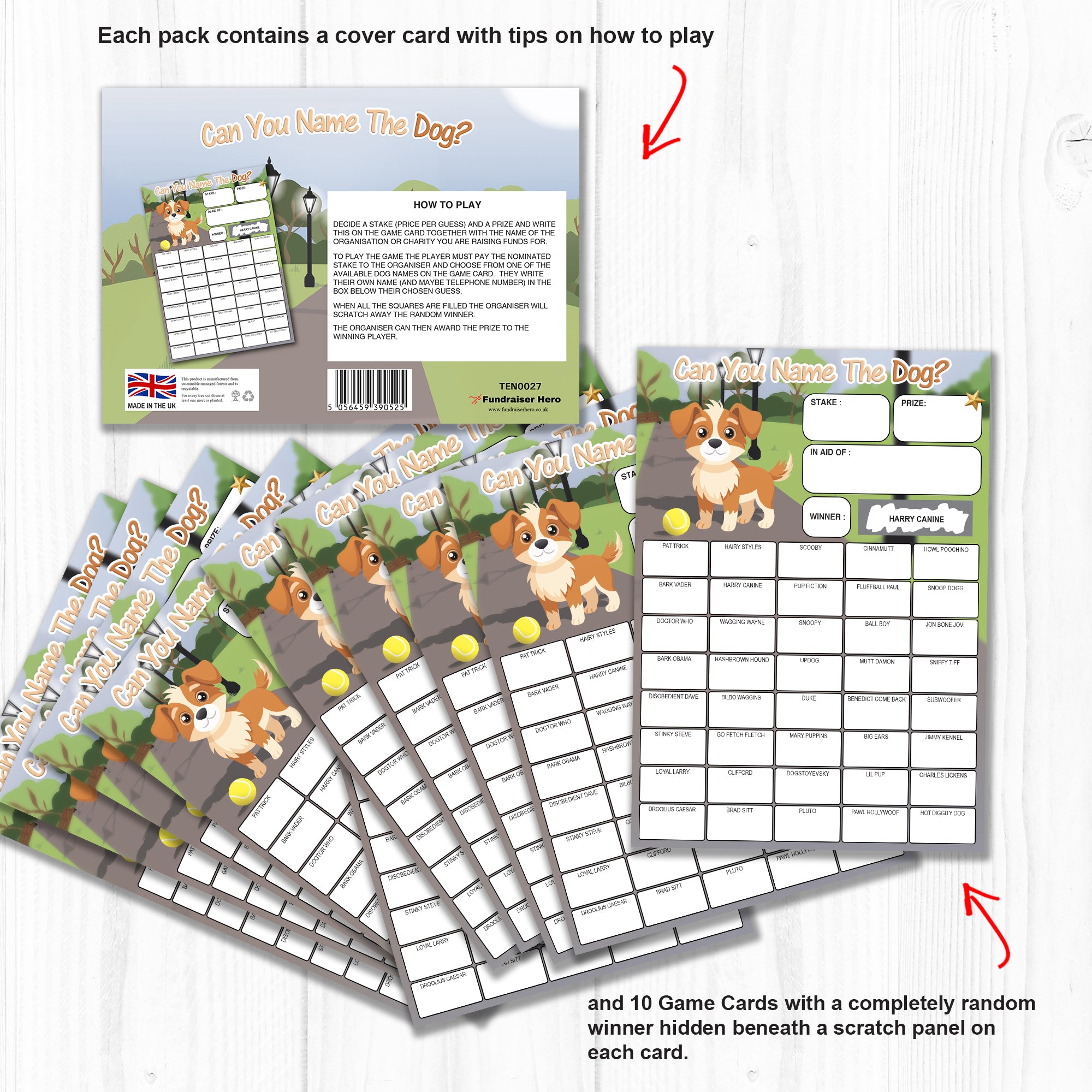 10 x NAME THE DOG SCRATCH CARDS (40 NAMES) ⭐ Each Pack contains 10 x Can You Name the Dog cards ⭐