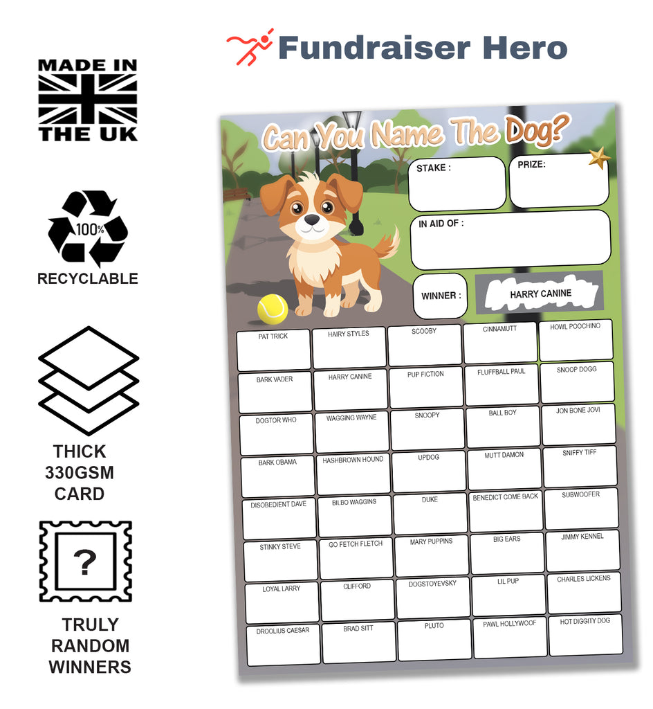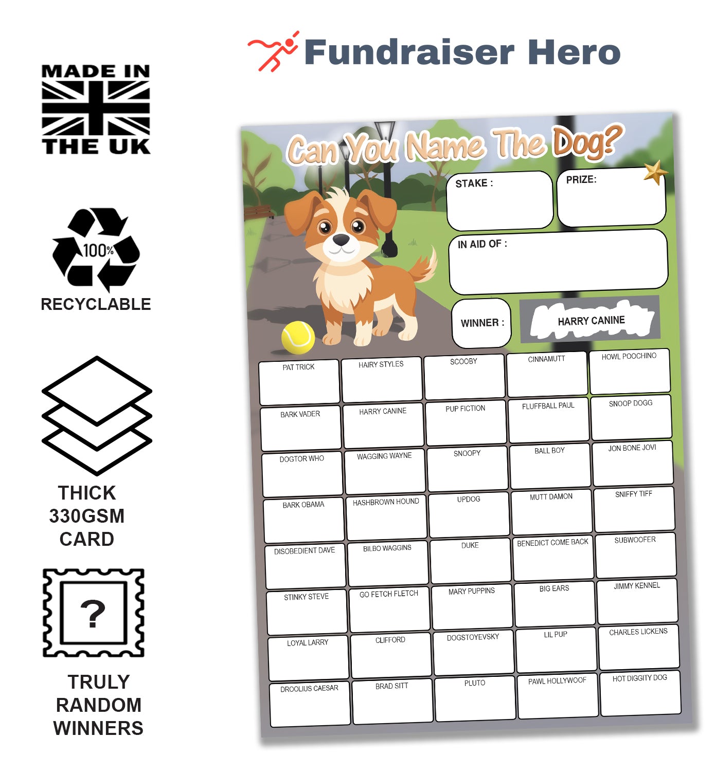 COMPUTER GENERATED RANDOM WINNERS ⭐ The scratch panel on each card hides a randomly generated dog names from the 40 available. Our production printers are linked to a computer generated routine that automatically picks a randomly generated winner when every card is printed. ⭐