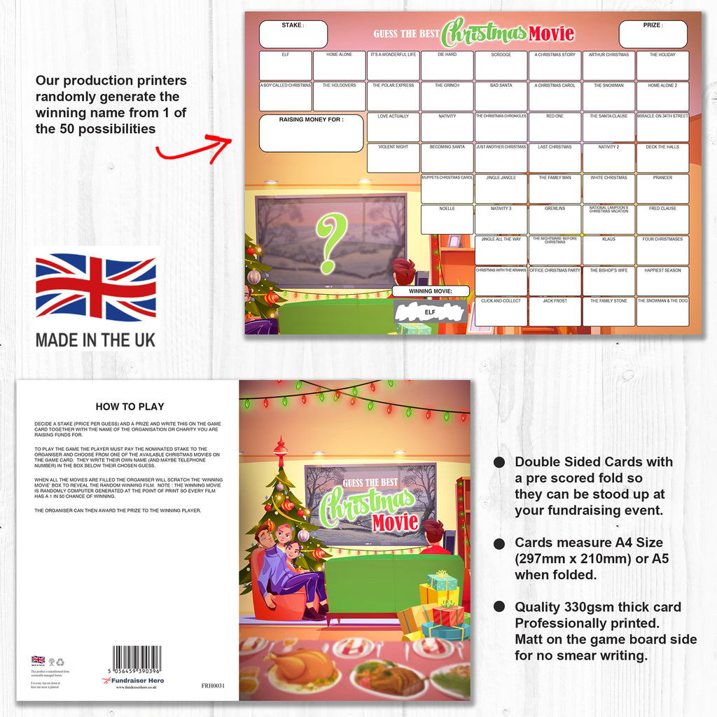 1 x GUESS THE BEST CHRISTMAS MOVIE FUNDRAISING CARD ⭐ Each Pack contains one Game Card ⭐