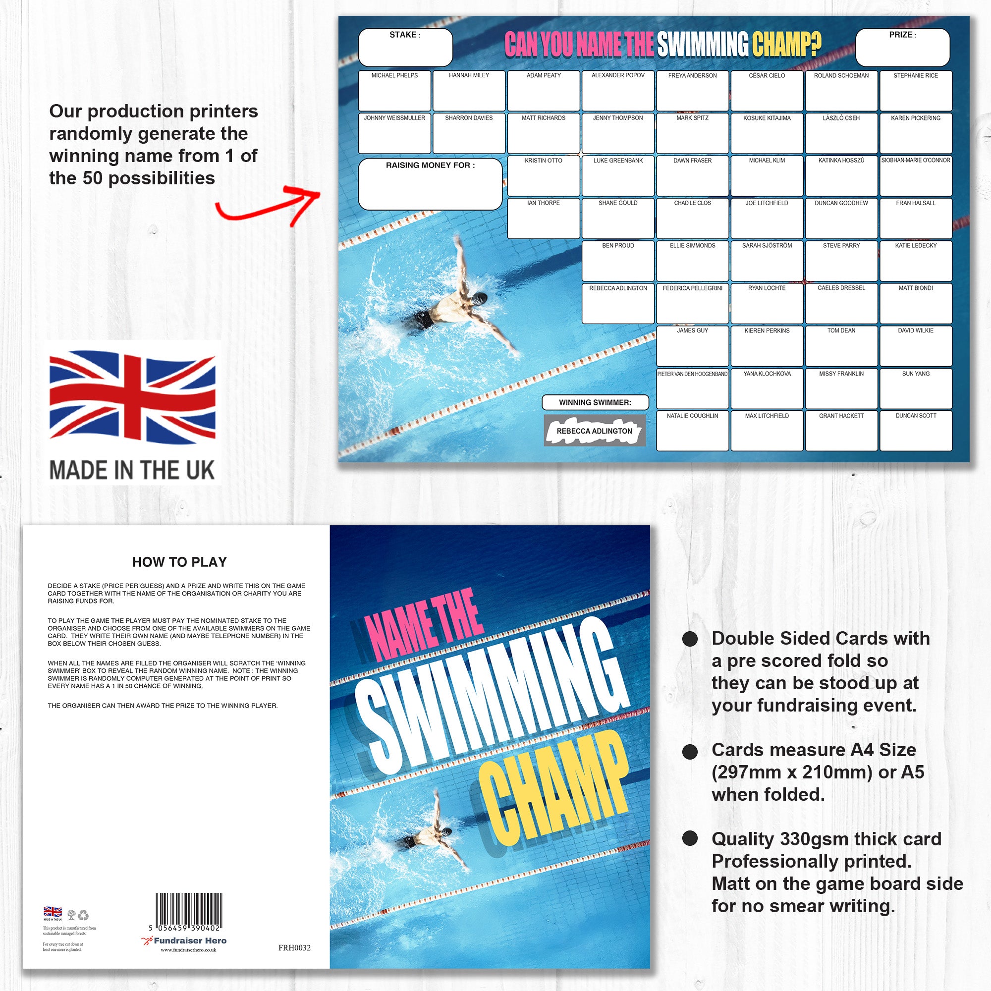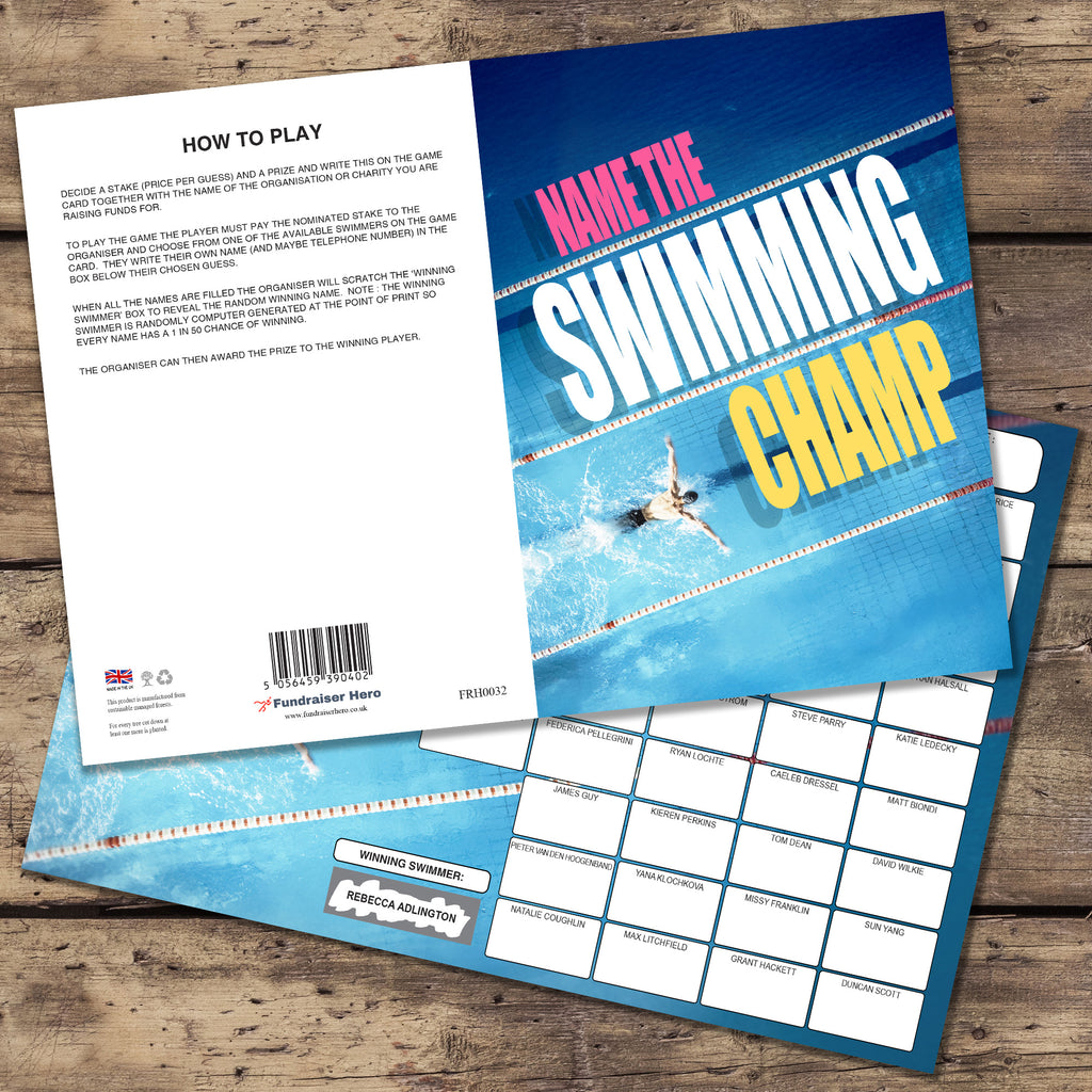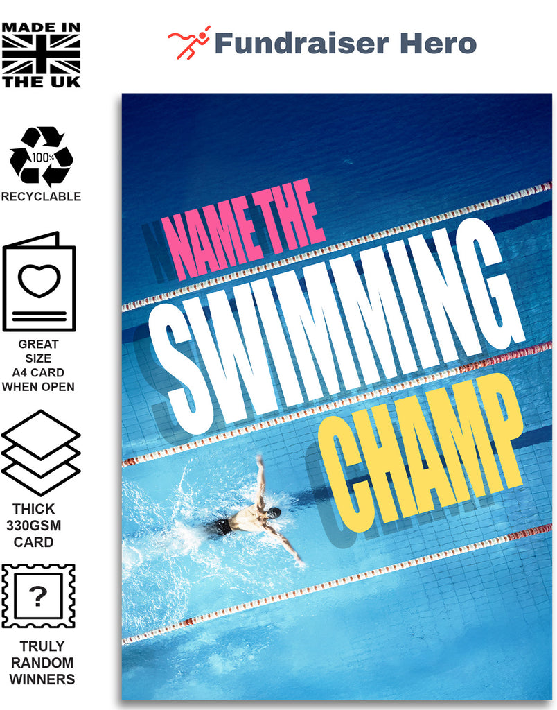 • 1 x NAME THE SWIMMING CHAMP FUNDRAISING CARD ⭐ Each Pack contains one Game Card ⭐