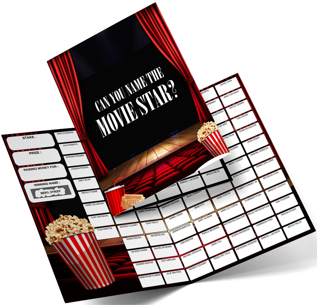 Name the Movie Star Fundraising Scratch Card. A4 Size - 100 Names - Double Sided 330gsm Card