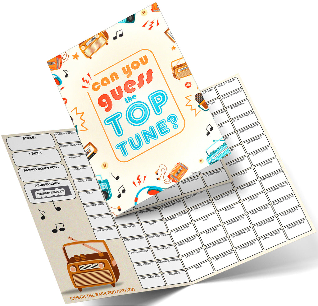 Name the Top Tune Fundraising Scratch Card. A4 Size - 100 Names - Double Sided 330gsm Card