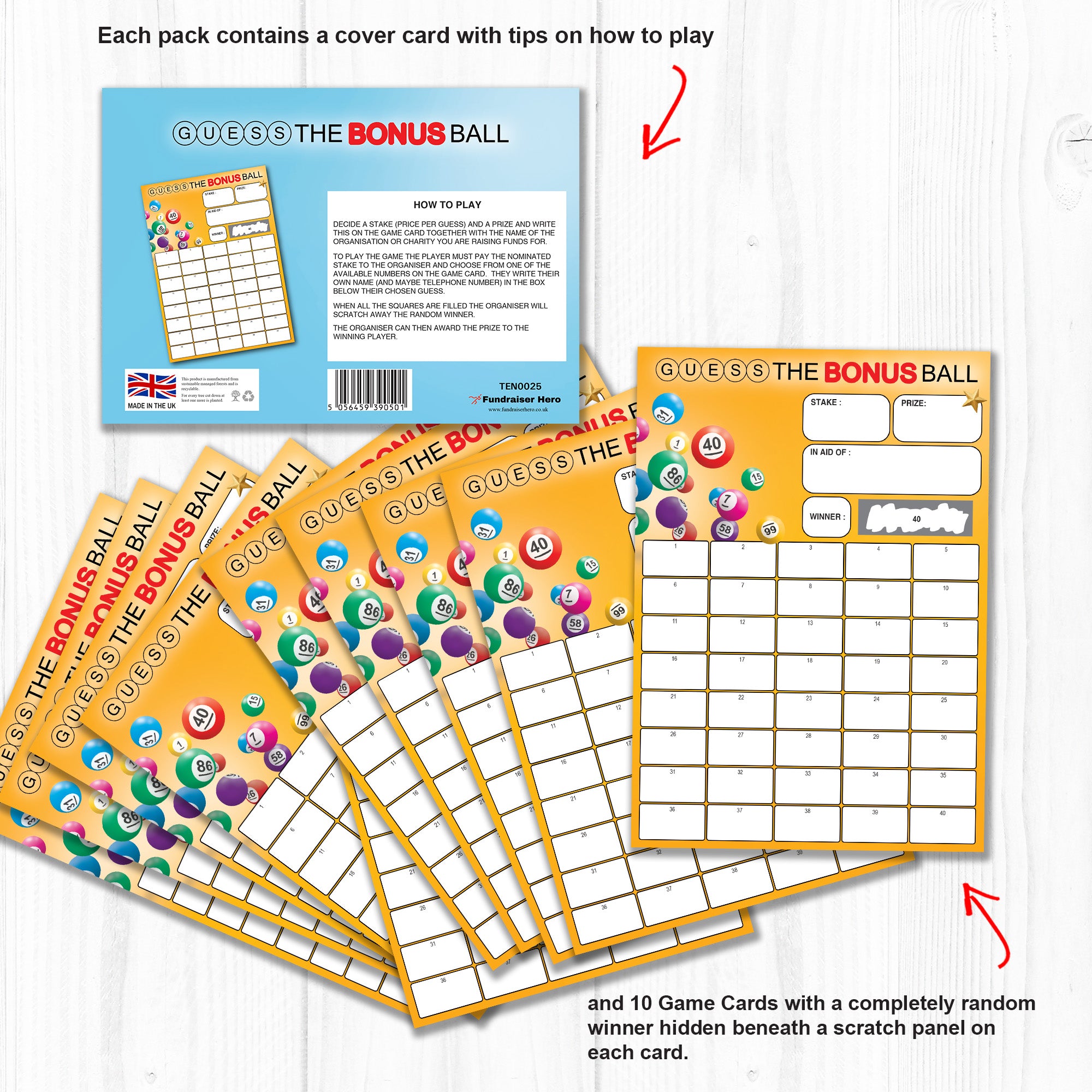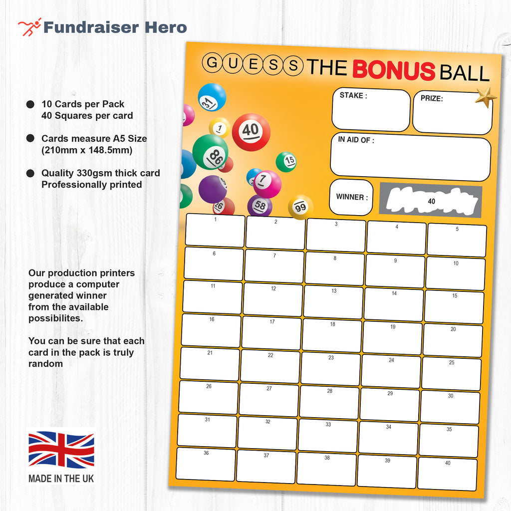 10 x GUESS THE BONUS BALL SCRATCH CARDS (40 NAMES) ⭐ Each Pack contains 10 x Guess the Bonus Ball cards ⭐