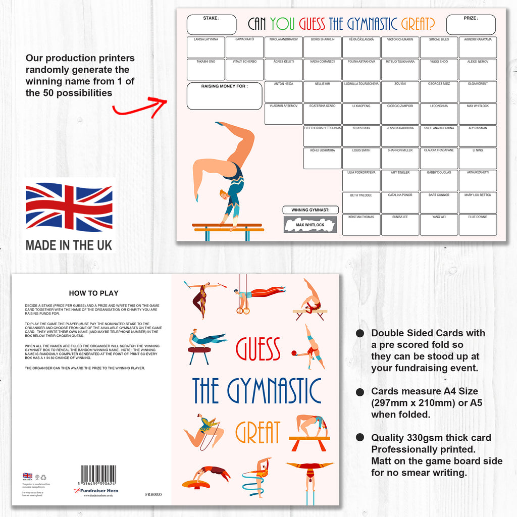 1 x GUESS THE GYMNASTIC GREAT FUNDRAISING CARD ⭐ Each Pack contains one Game Card ⭐