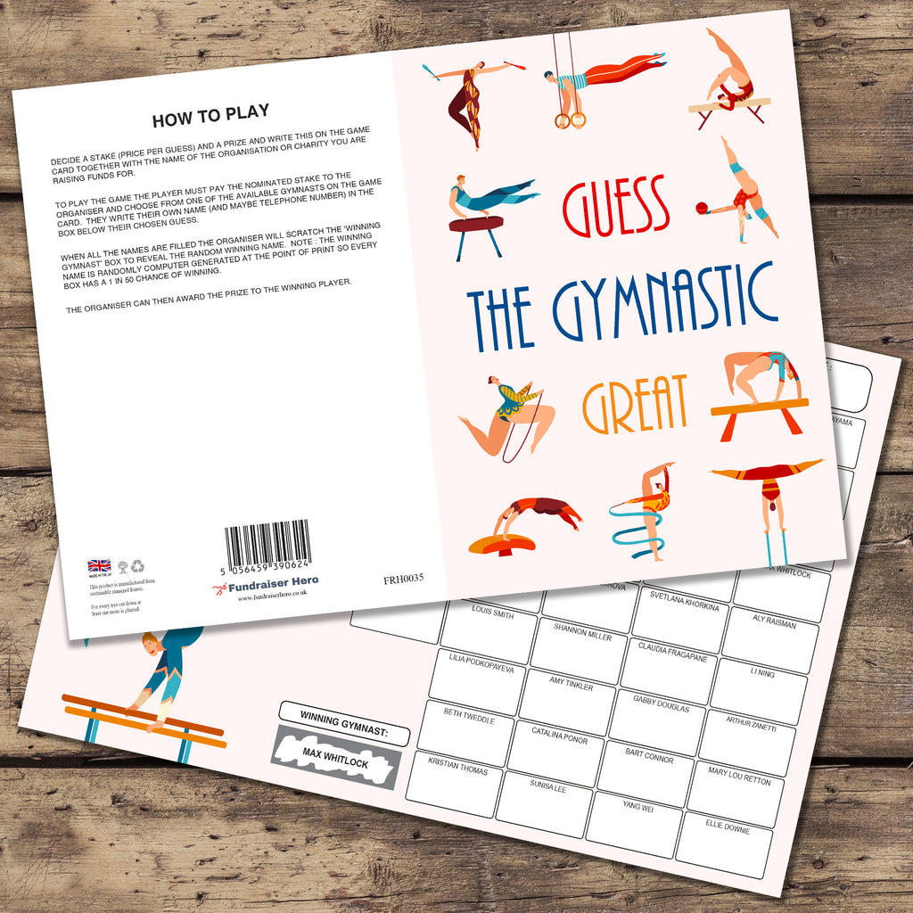 Guess the Gymnastic Great Scratch Card. A4 Size - 50 Names - Double Sided 330gsm Card