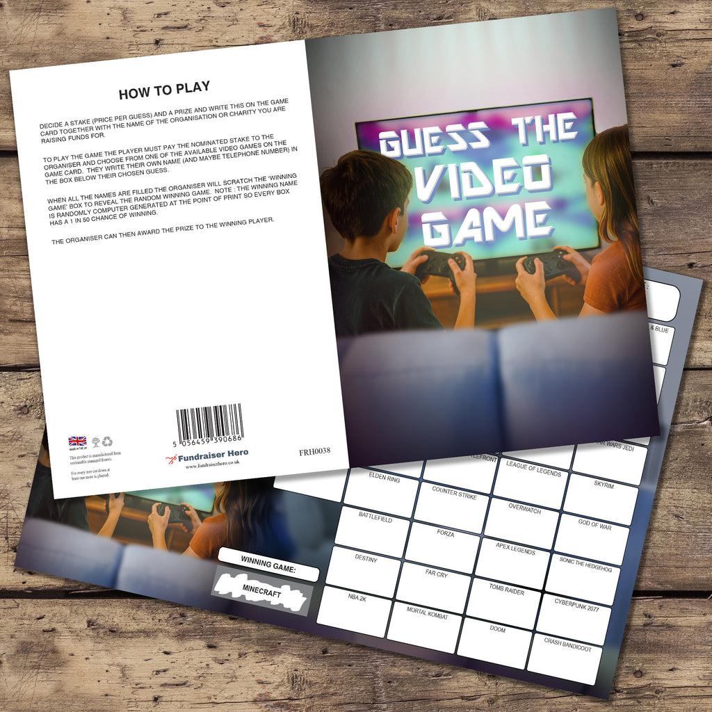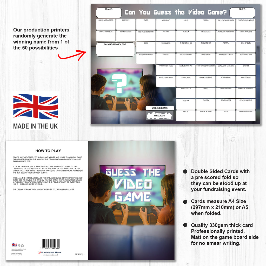 1 x GUESS THE VIDEO GAME FUNDRAISING CARD ⭐ Each Pack contains one Game Card ⭐