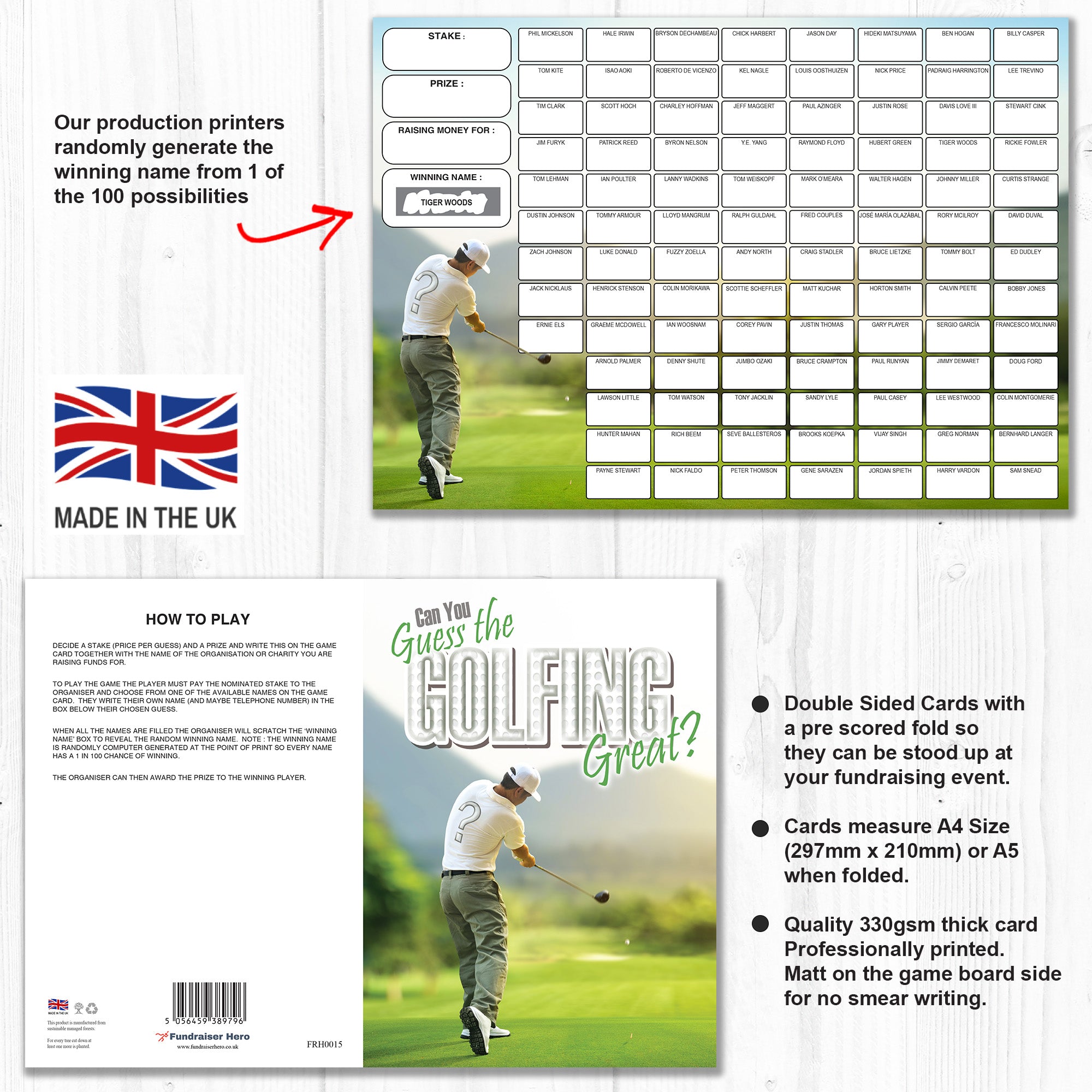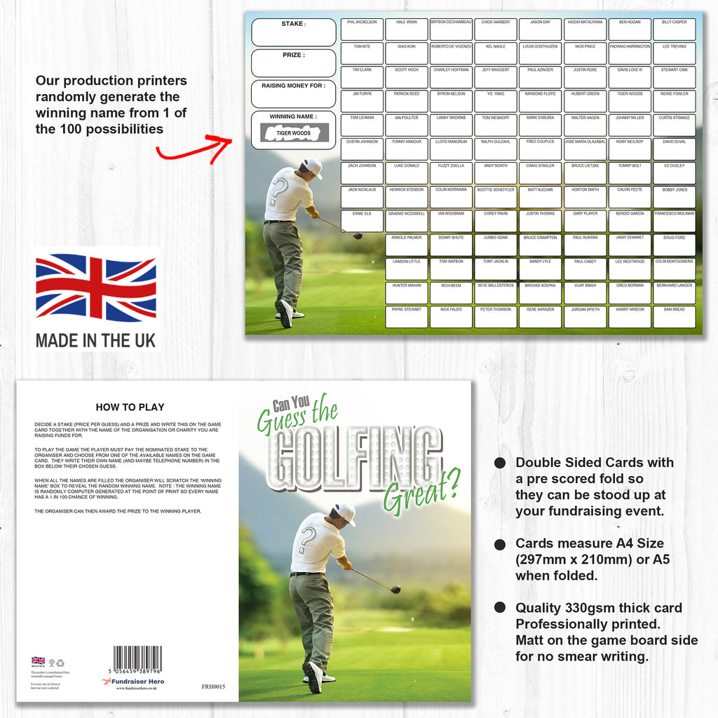 • 1 x NAME THE GOLFING GREAT FUNDRAISING CARD ⭐ Each Pack contains one Game Card ⭐