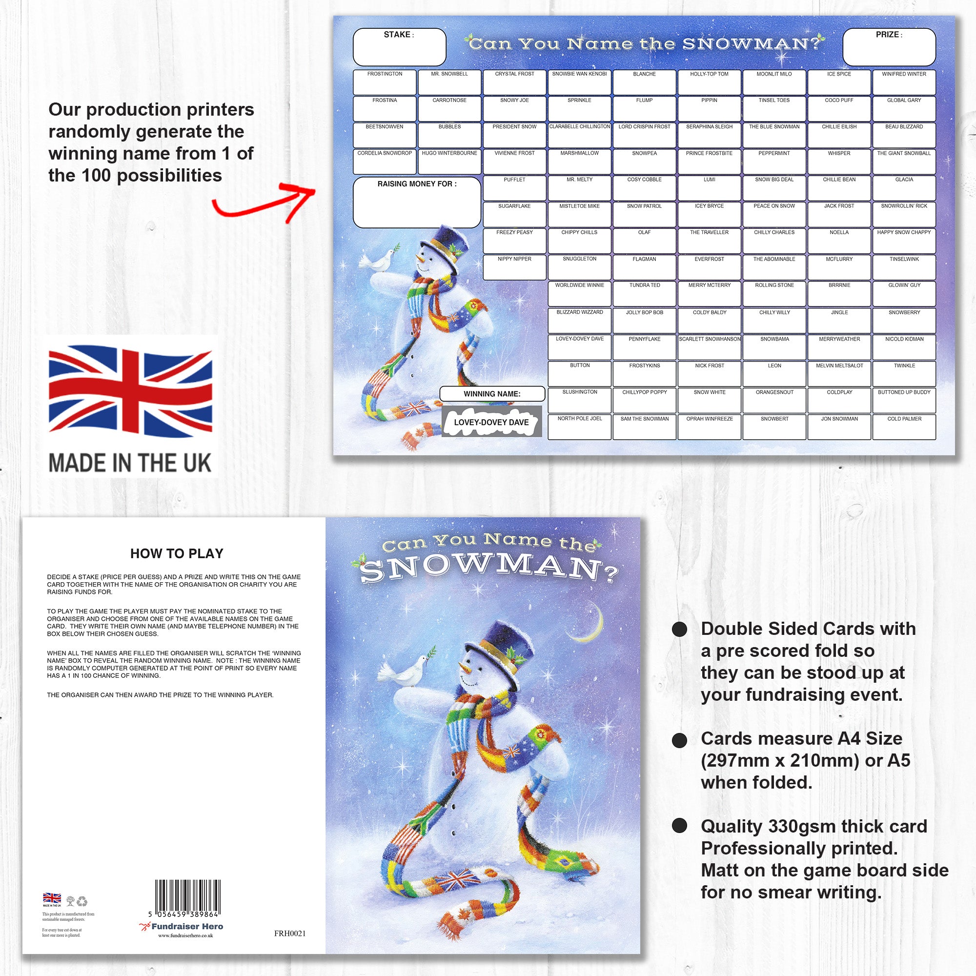 1 x NAME THE SNOWMAN FUNDRAISING CARD ⭐ Each Pack contains one Game Card ⭐