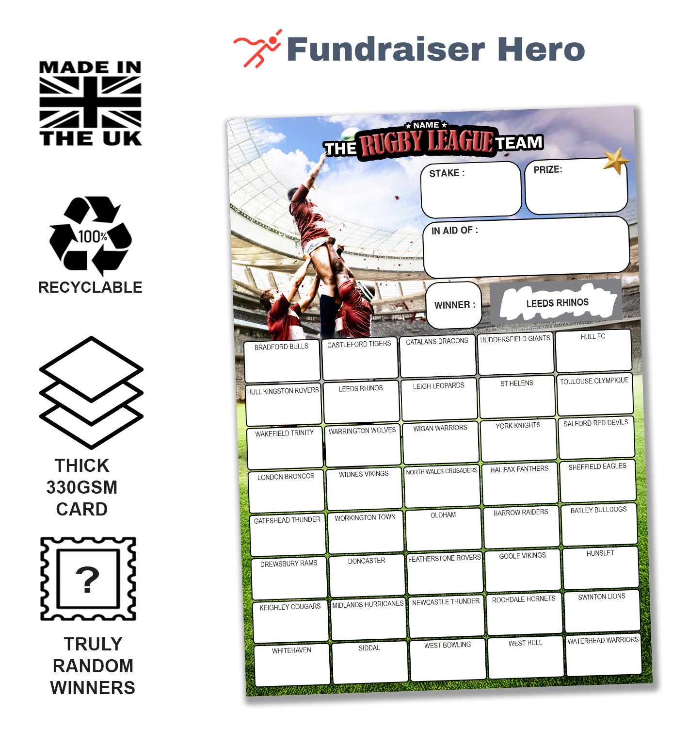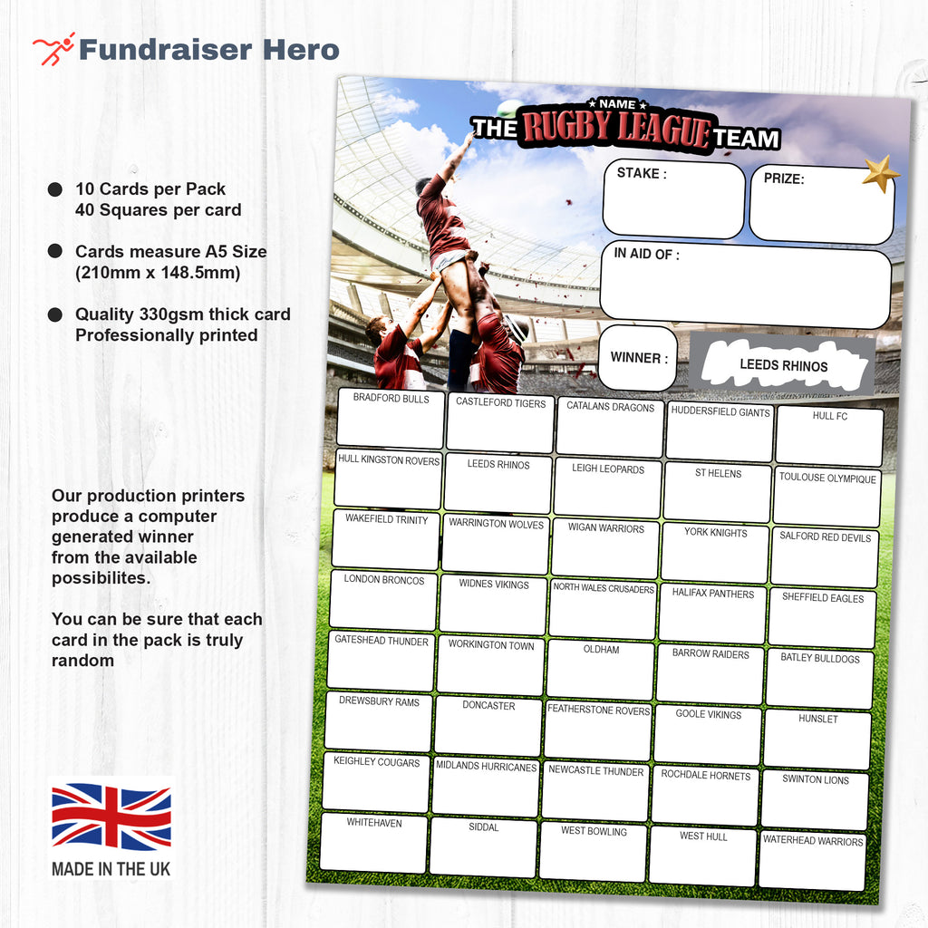 COMPUTER GENERATED RANDOM WINNERS ⭐ The scratch panel on each card hides a randomly generated Rugby League team from the 40 available. Our production printers are linked to a computer generated routine that automatically picks a randomly generated winner when every card is printed. ⭐