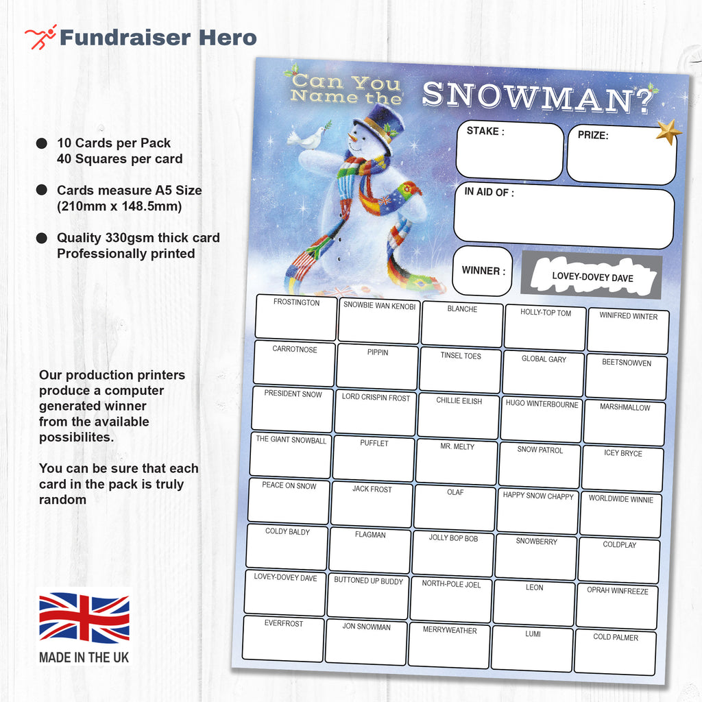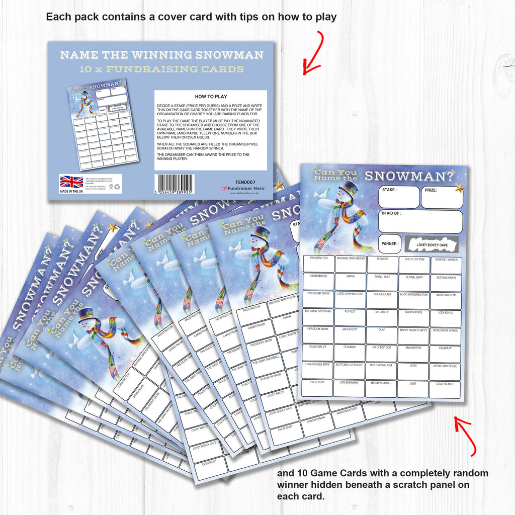 10 x SNOWMAN NAMES SCRATCH CARDS (40 NAMES) ⭐ Each Pack contains 10 x Guess the Snowman Game cards ⭐