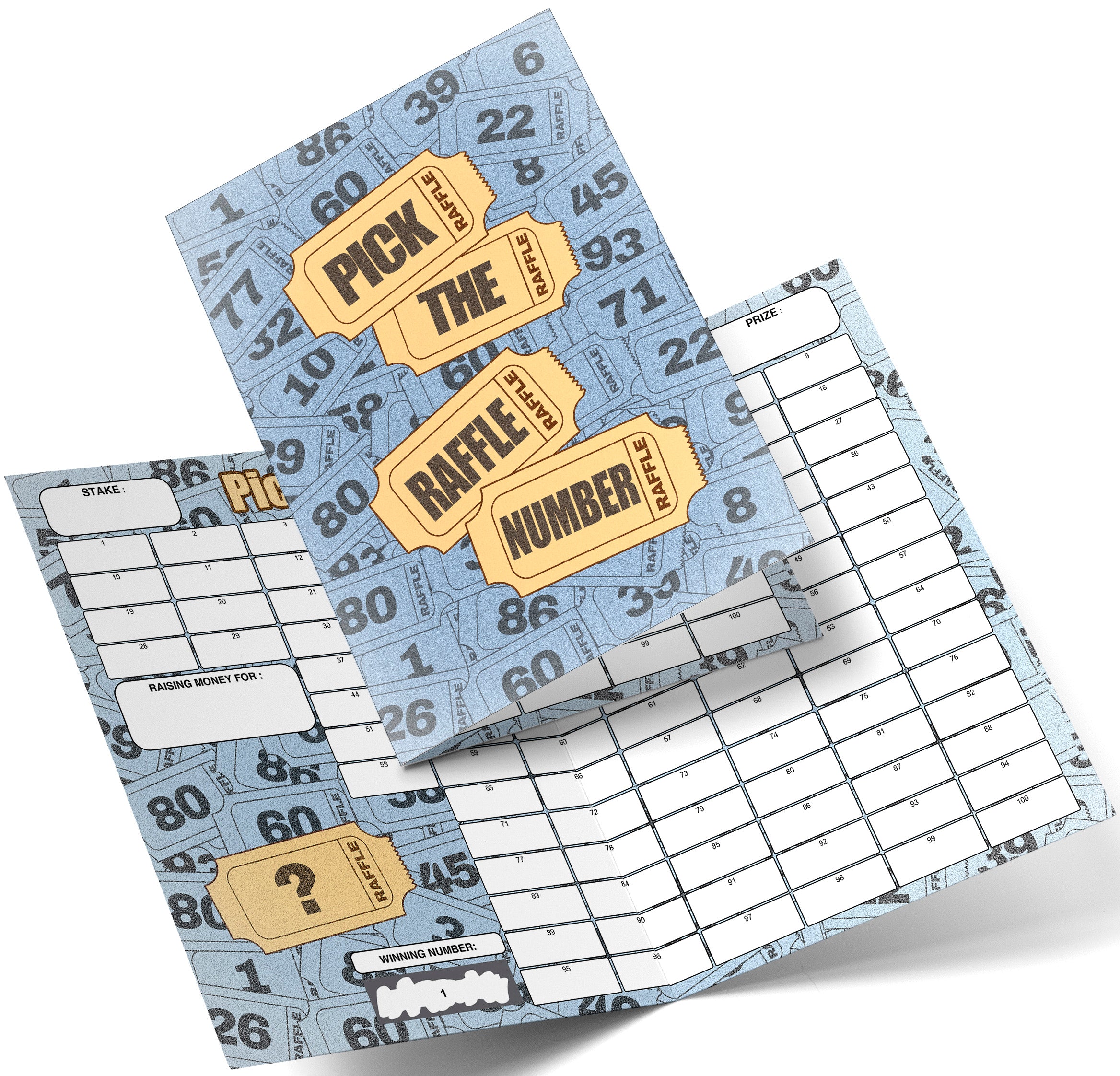 Pick the Raffle Number Scratch Card. A4 Size - 100 Names - Double Sided 330gsm Card