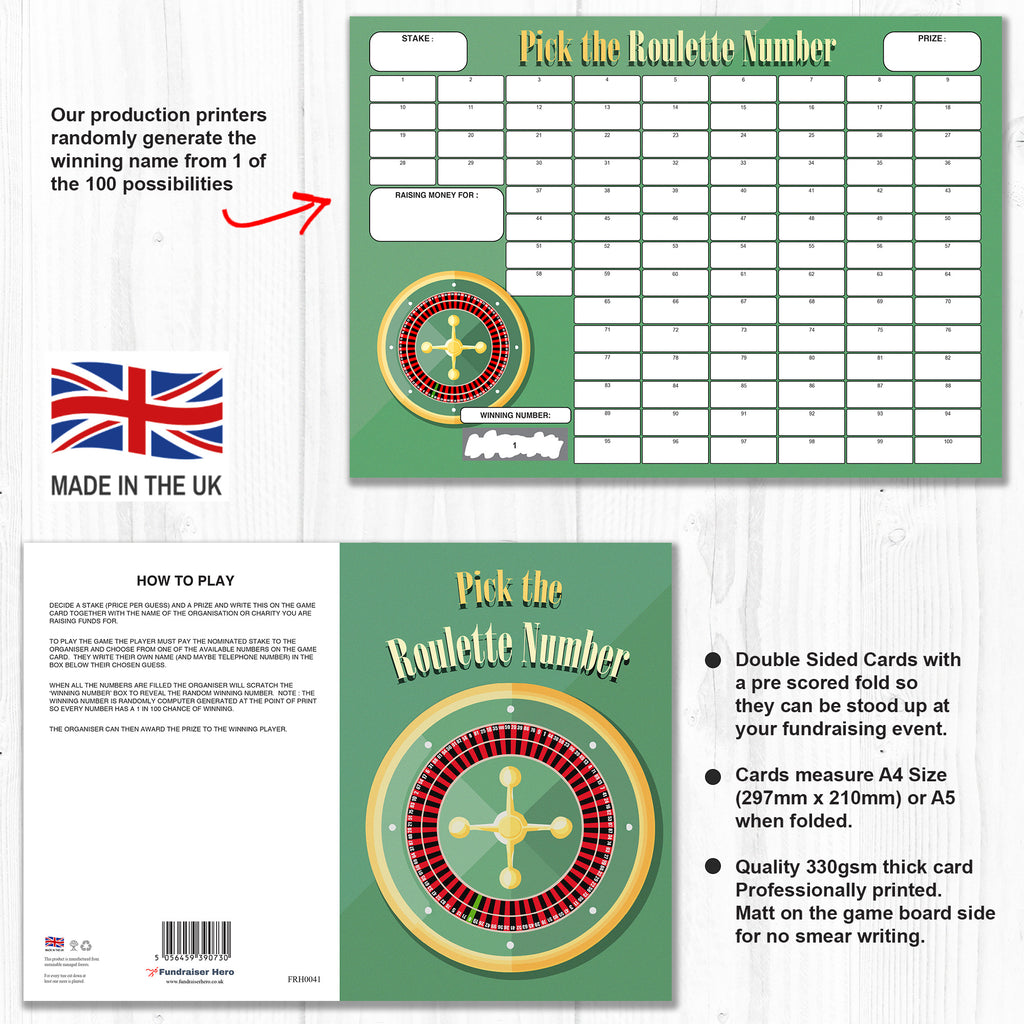 1 x PICK THE ROULETTE NUMBER FUNDRAISING CARD ⭐ Each Pack contains one Game Card ⭐