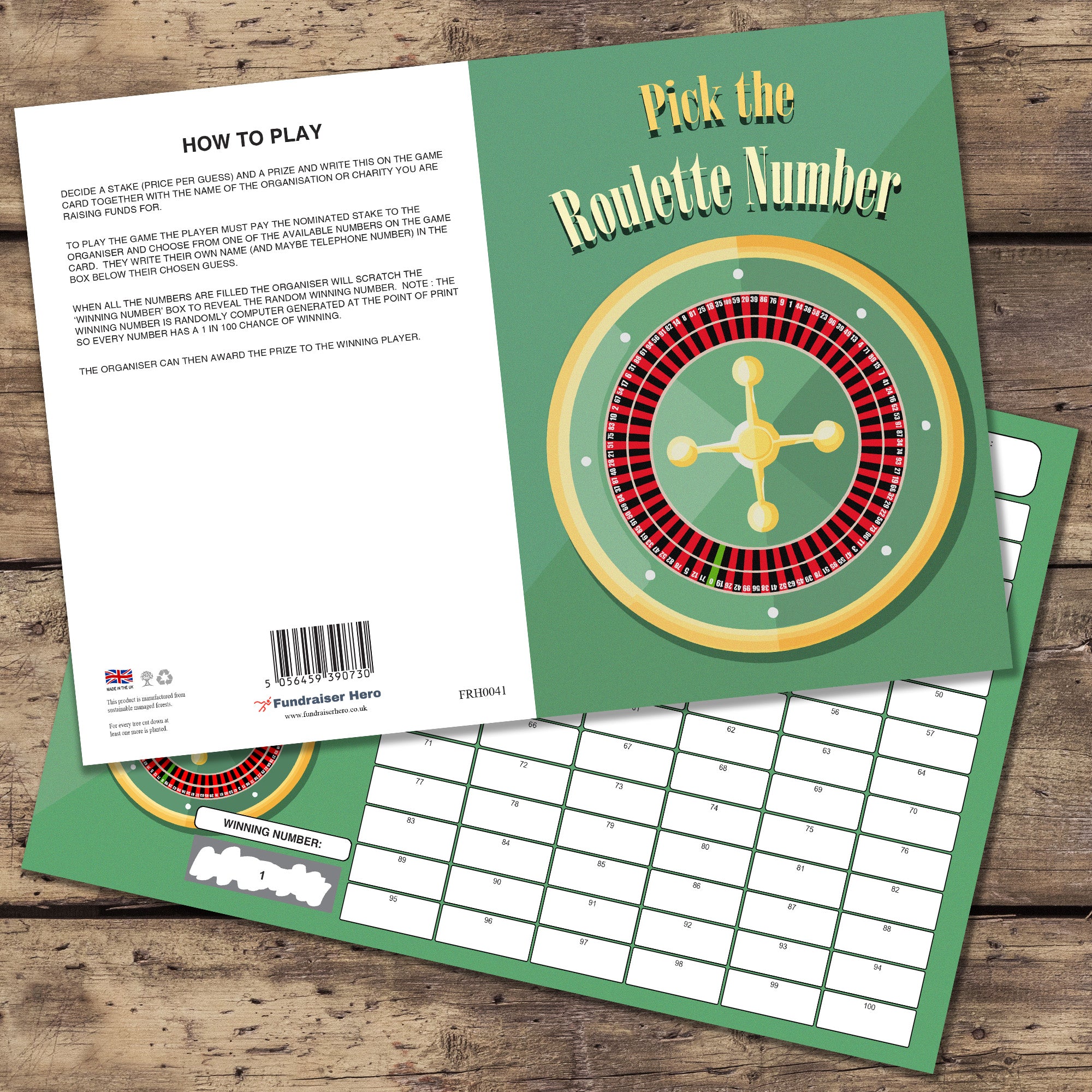 Pick the Roulette Number Scratch Card. A4 Size - 100 Names - Double Sided 330gsm Card